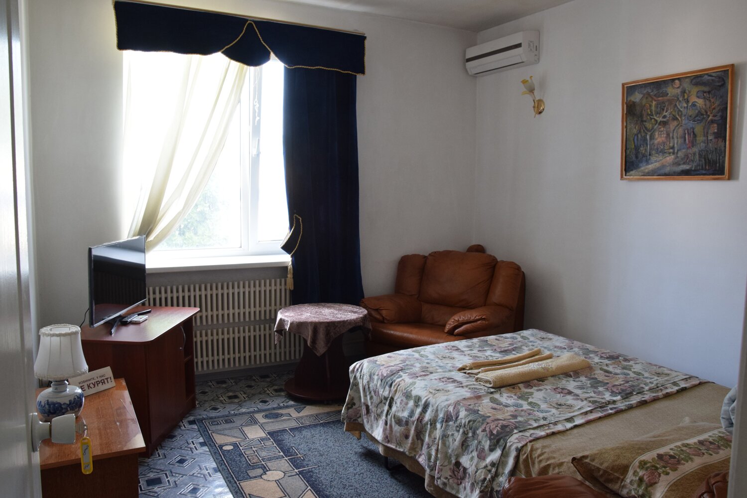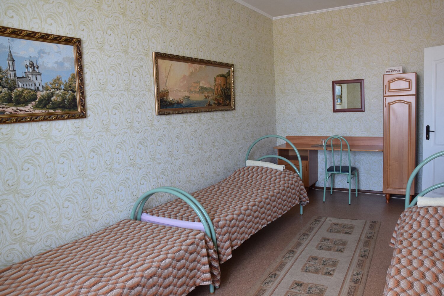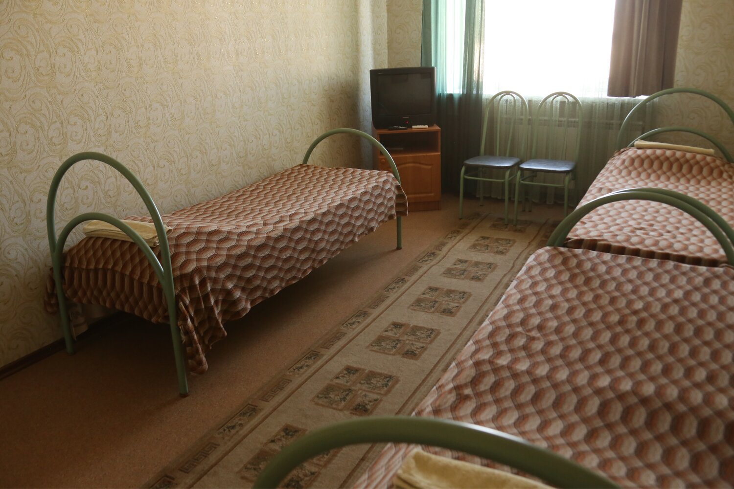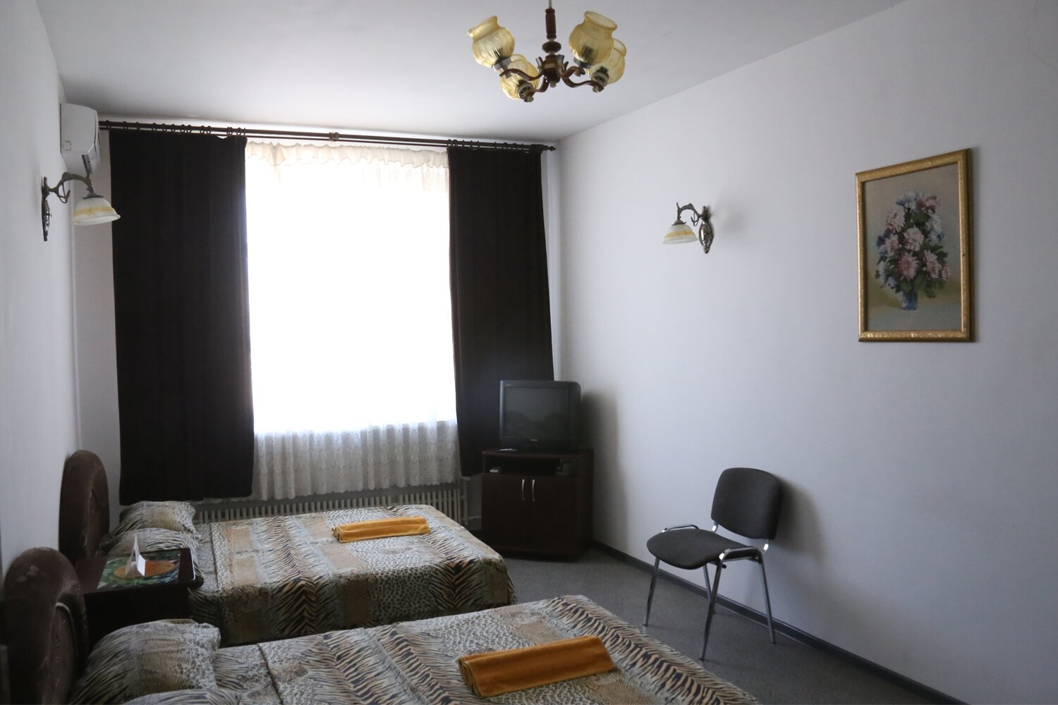 Две двуспальные кровати. Кондиционер, холодильник, Тв, wi-fi. Туалет и душ в номере