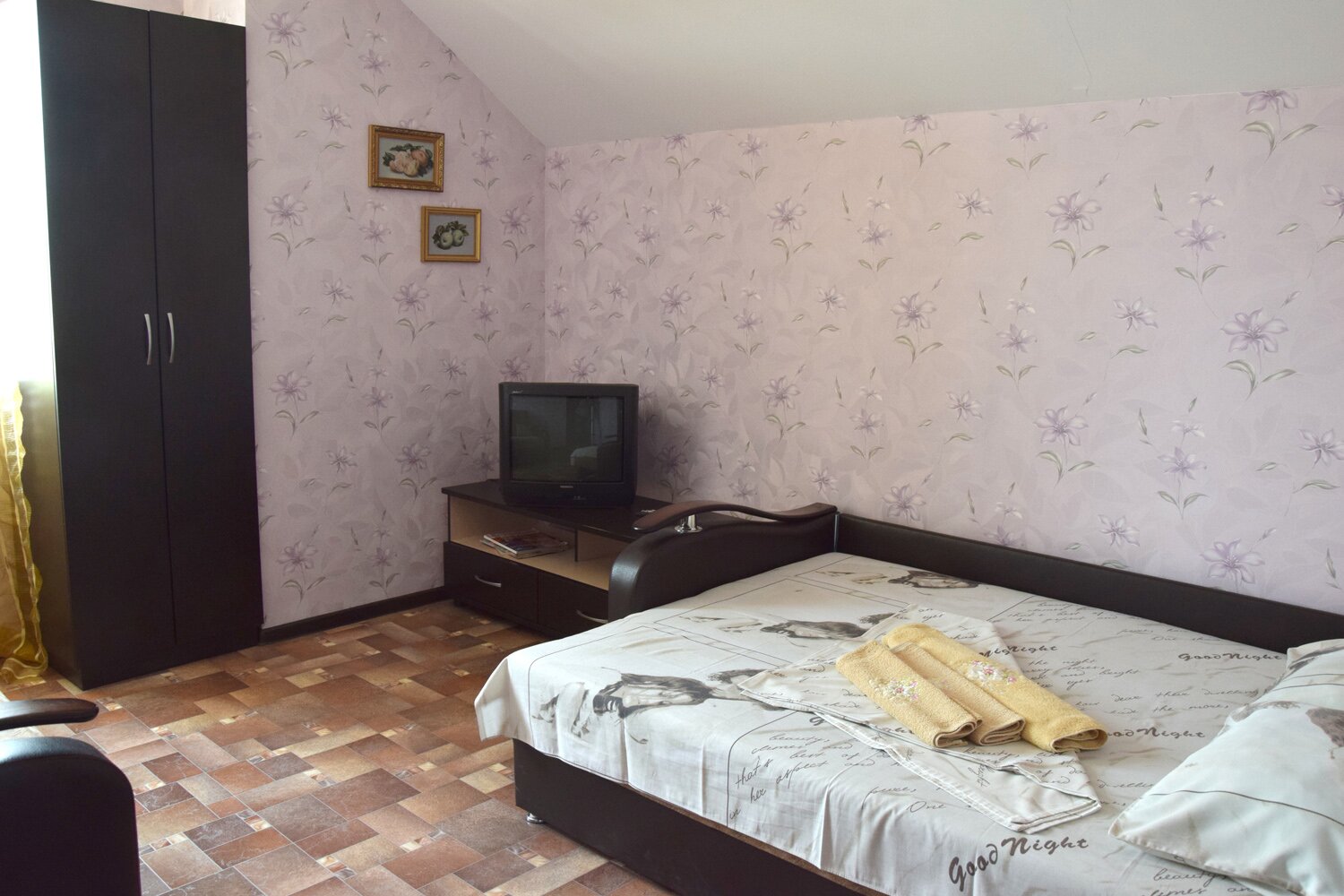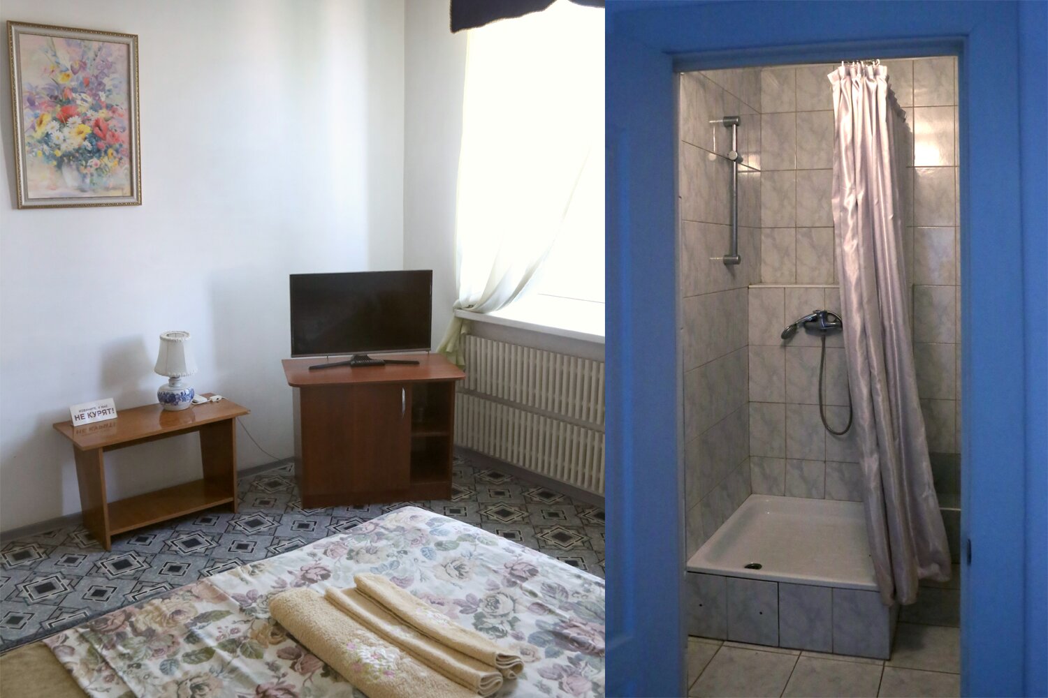 Большая двуспальная кровать. Душ и туалет в номере. wi-fi